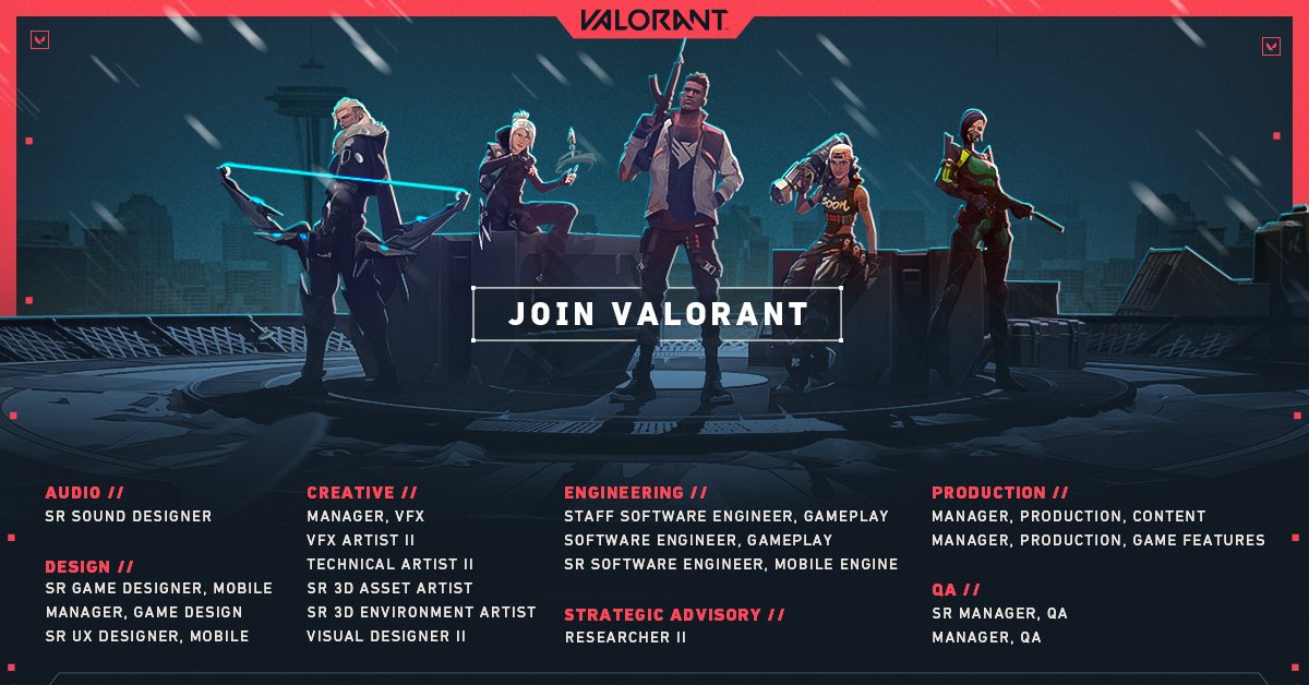 Riot Games Careers On Twitter Heads Up The Valorant Team Is Looking For A Few Good Agents To Join Their Squad As We Move Forward With Our Expansion Into The Seatte Area